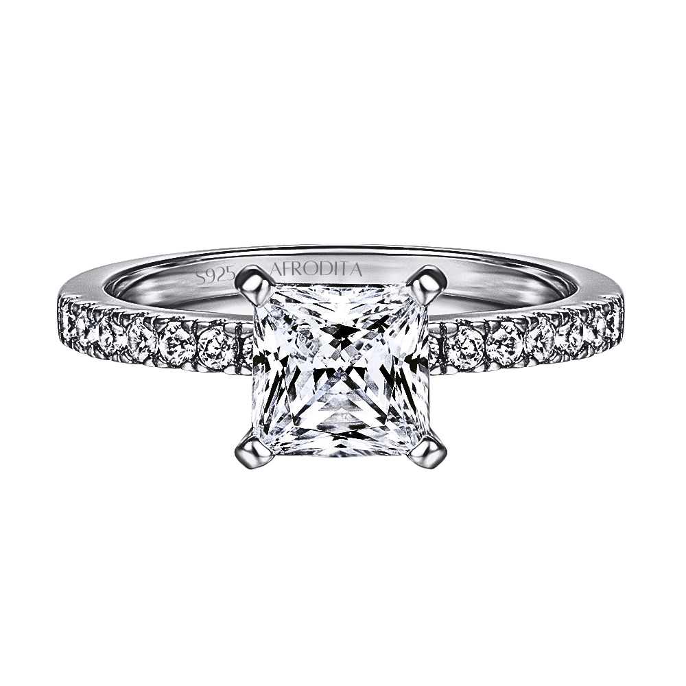 Sella tu amor eterno con el anillo de compromiso AFRODITA, una joya que simboliza fidelidad, compromiso y un futuro brillante juntos. Diseñado en plata maciza bañada en oro blanco 18k, este anillo deslumbra con una imponente gema cuadrada de 6x6mm en circón AAAAA, reconocido por su extraordinario brillo y pureza.
