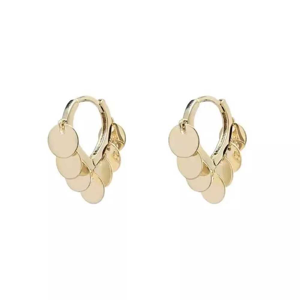 Unos hermosos pendientes dorados en movimiento con lentejuelas brillantes. Estos aretes cuentan con una borla de discos dorados que añade un toque de elegancia. Esta joyería de lujo coreana es ideal para fiestas, bodas, cumpleaños y reuniones, y se convertirá en el accesorio perfecto para complementar tu outfit.