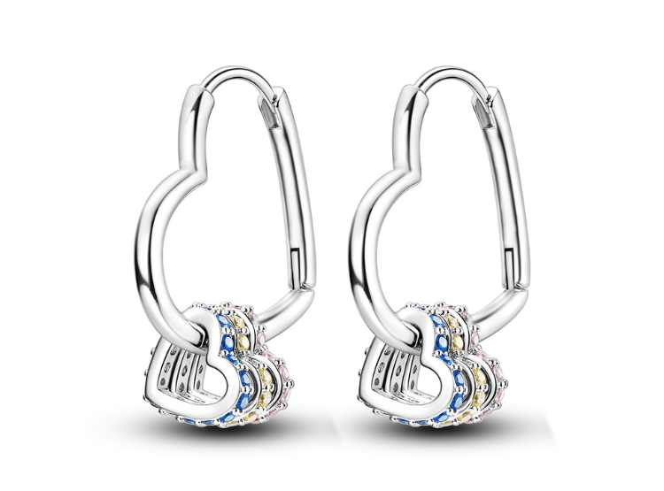 Descubre la delicadeza de los aretes de Plata 925 modelo Rebecca. Estos encantadores aretes en forma de corazón destacan por su diseño romántico, adornado con tres mini corazones incrustados con circones de hermosos colores.